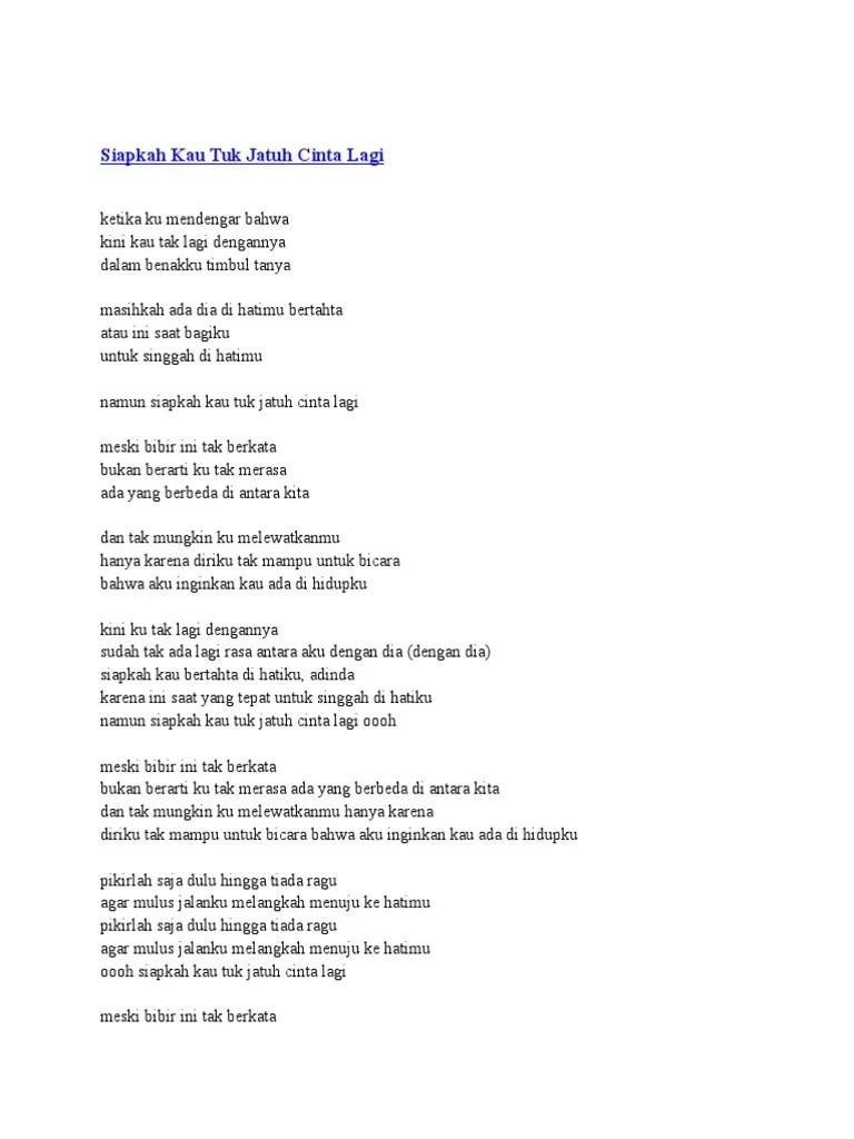 Kereta kencan (2017) siapkah kau 'tuk jatuh cinta lagi ketika ku mendengar bahwa kini kau tak lagi dengannya. Simak chord gitar dan lirik lagu siapkah kau tuk jatuh cinta lagi yang. Lirik lagu 'siapkah kau tuk jatuh cinta lagi' dari hivi yang sedikit usil. Kini 'ku tak lagi dengannya. (dea:) g em am ketika ku mendengar bahwa d bm kini kau tak lagi dengannya em am d dalam benakku timbul tanya g em am d masihkah ada dia di hatimu bertahta .