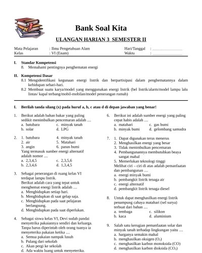 Latihan soal uas ukk ipa kelas 1 sd semester 2 dan kunci jawaban kurikulum ktsp 2006.